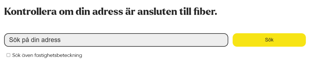 klicka på sök då kommer du får information om din adress är ansluten och vad du kan få till din adress.
